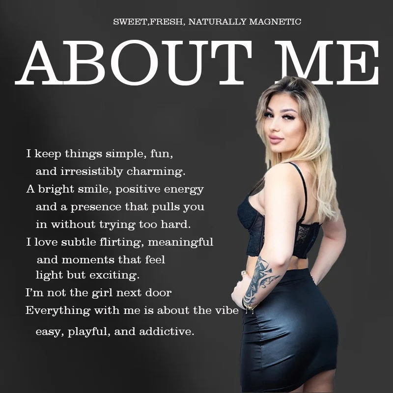 I’m sweet when I smile, but there’s a playful side of me that loves to tease a little. I love attention, deep eye contact, and those moments when a simple look can say more than words.